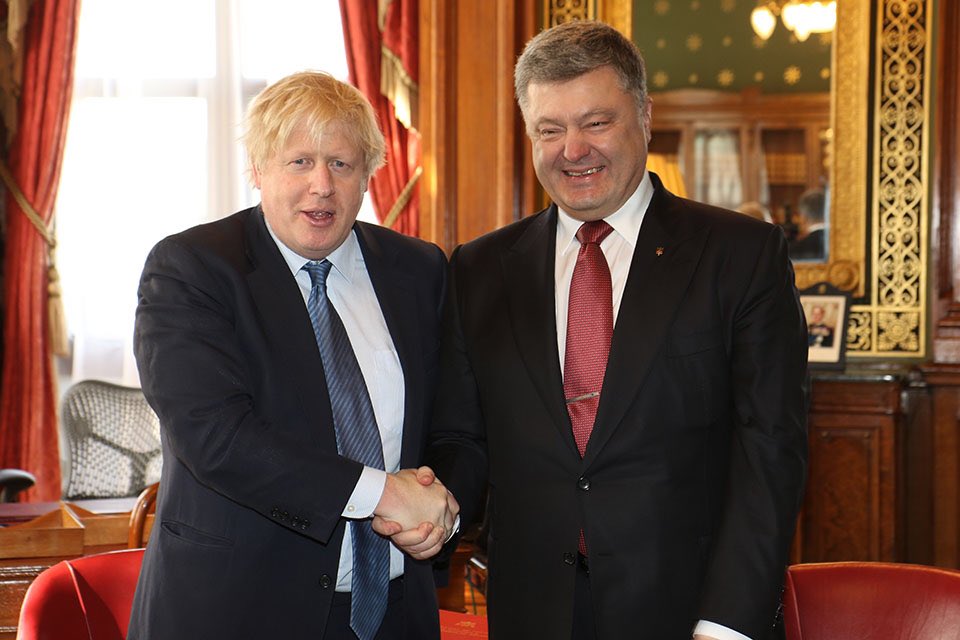 Boris Johnson: Marked 25 yrs of relations with Ukraine by welcoming President @Poroshenko to UK. We continue to support Ukraine's sovereignty and security.