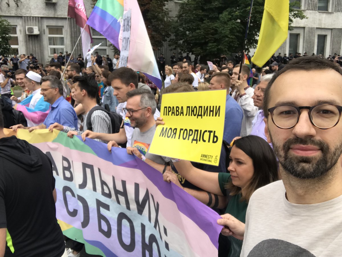 MP Leschenko: Was honor to be in the first row of KyivPride2018 together with @svitlanaza @MiRo_SPD @MaximEristavi @RebHarms @WaschukCanUA. It was the most crowded LGBT-pride since we can march openly with rainbow's flags. One more big step of Ukraine toward Europe