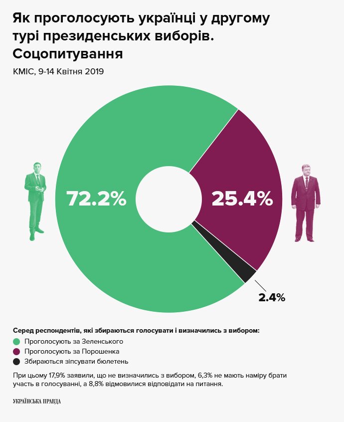 New Ukraine poll from Kyiv Int'l Institute of Sociology gives Zelenskiy a massive lead over Poroshenko with runoff election 5 days away. 72.2% for Zelenskiy 25.4% for Poroshenko