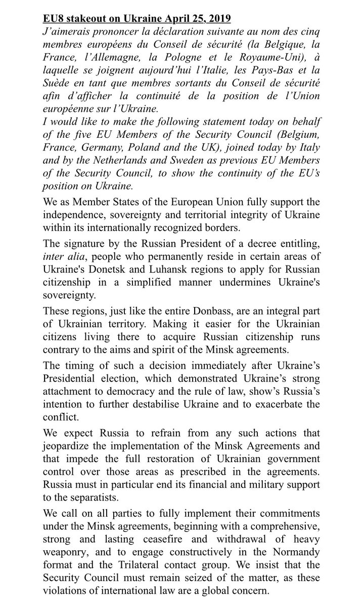 Five EU Members of the Security Council — Belgium, France, Germany, Poland and the UK —, joined by Italy and by the Netherlands and Sweden as previous EU Members of UNSC, issue a statement in support of Ukraine