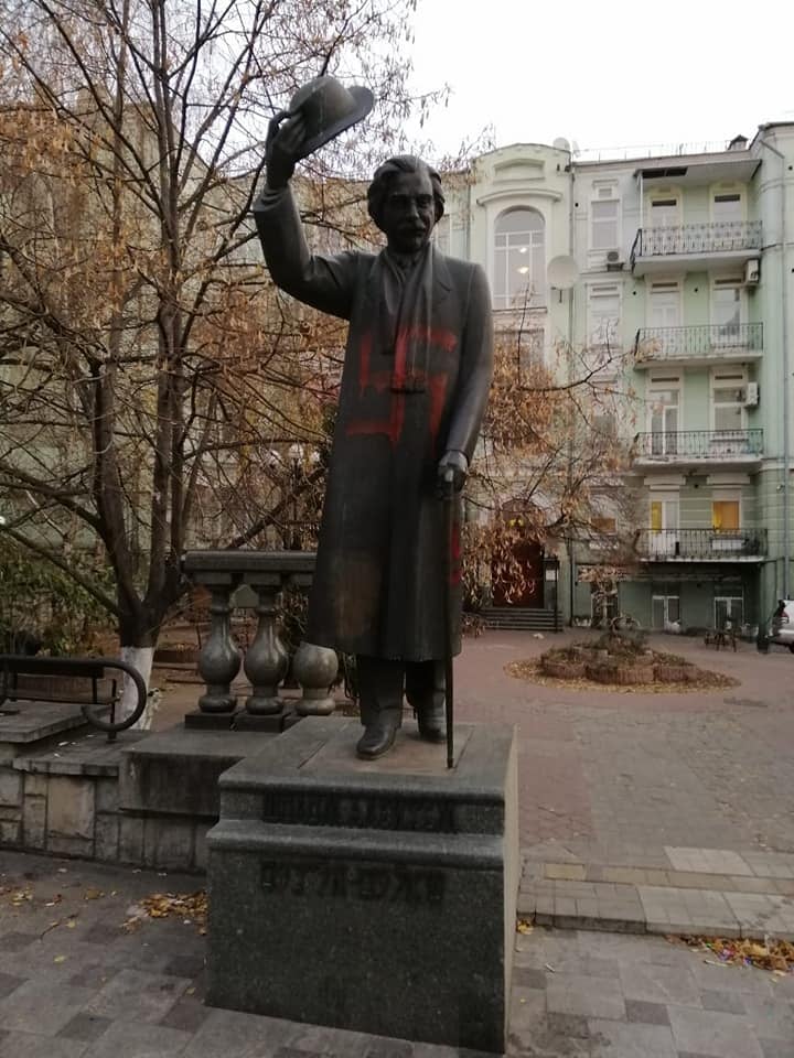 In Kyiv, a statue of Sholem Aleichem, the Jewish writer whose short stories formed the basis for Fiddler on the Roof, has been daubed with swastika graffiti.