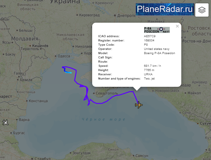 US Navy P8A Poseidon 169004, Maritime surveillance and ASW platform, on an intelligence-gathering mission over the Black Sea, tracking off Russian-occupied Crimea and coast of Krasnodar Oblast.