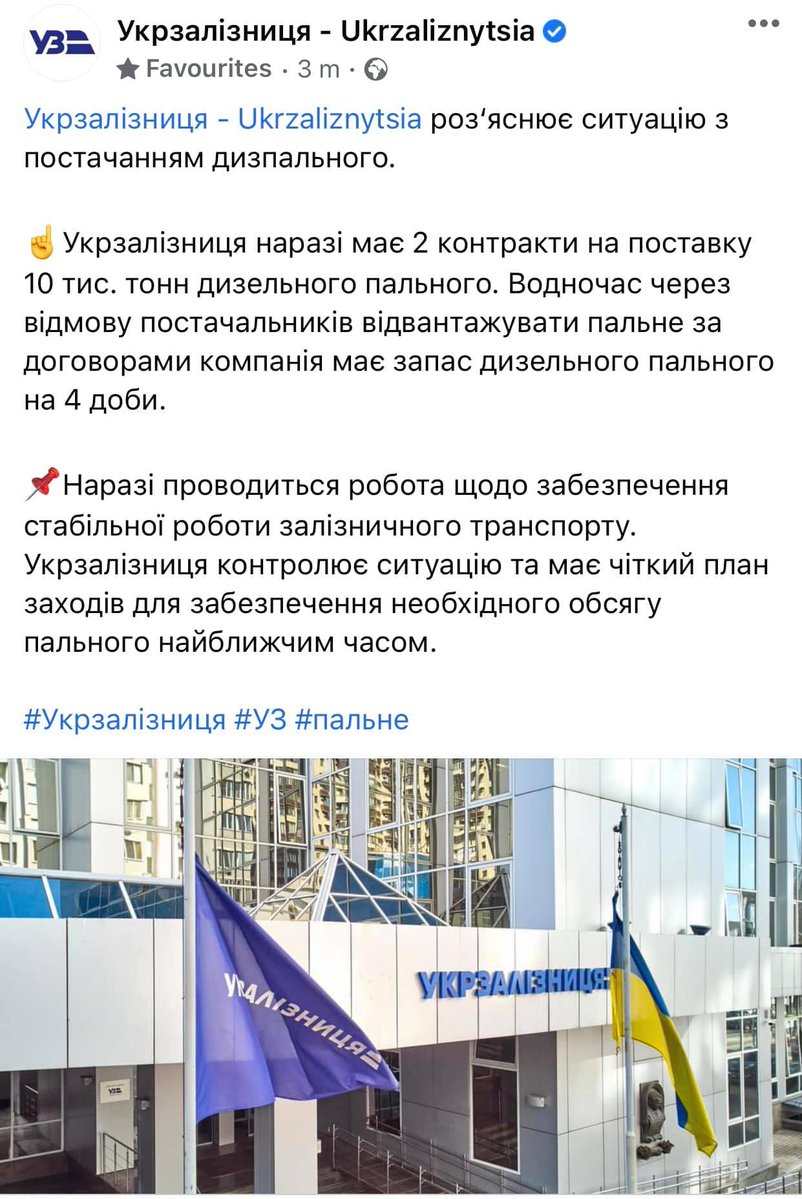 While Russia builds up its army against Ukraine, Ukrainian railways report they have fuel for trains just for 4 days because of problems with contracts. This is also a result of failed governance in the railway company