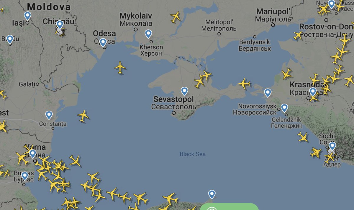 Now NOTAM notifications for pilots say Russia has closed the airspace over southern Crimea between Sevastopol and Feodosiya, as well as over the region's adjacent waters and parts of the Black Sea, for the period between April 20 and 24. For military drills