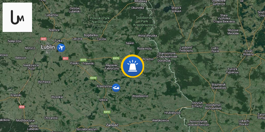 Red alert "Threat of air attack. Exercise extreme caution. Follow the instructions of the services. Wait for further announcements." The RCB alert was sent to recipients in the following counties: Chełm, Chełm, Krasnystaw, Łęczna, Świdnica, Włodawa (Lublin Voivodeship).