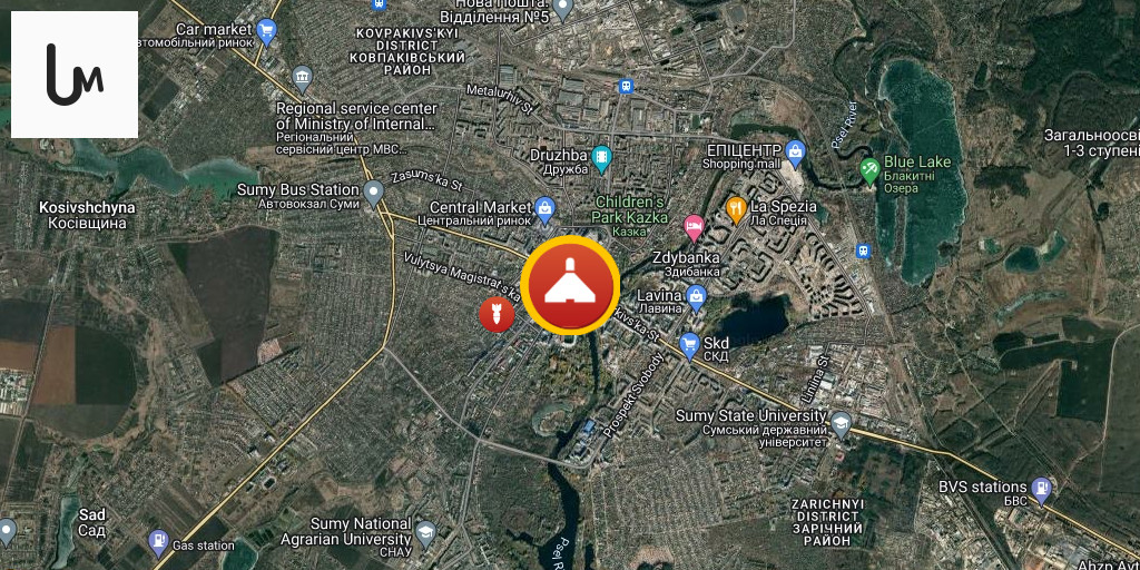 Administrative building was damaged in central part of Sumy as result of drone strikes