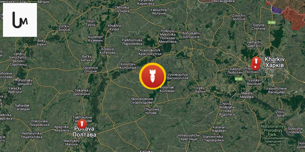 An explosion was audible in Poltava, and a series of explosions also in Izyum in the Kharkiv region