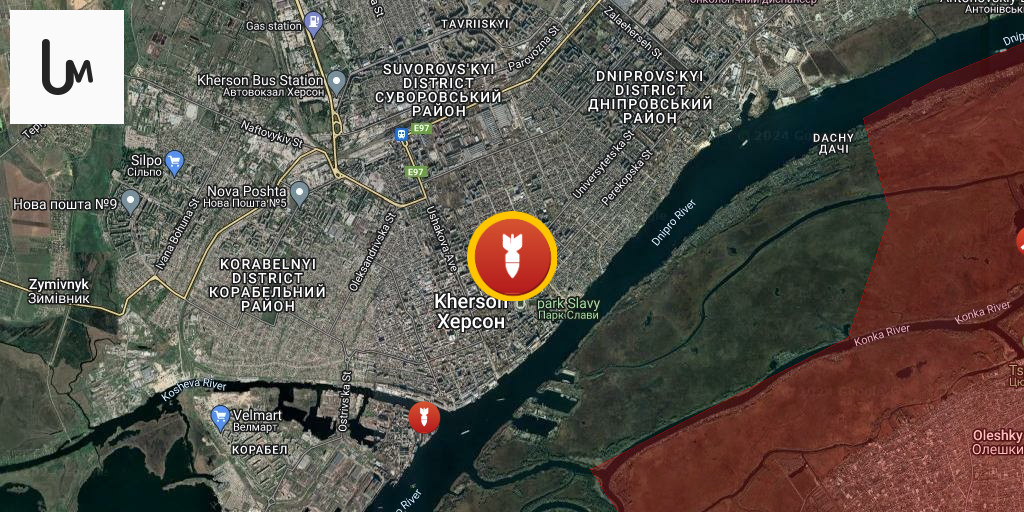 Russian army shelling Kherson with artillery and drones in the areas of previous airstrikes