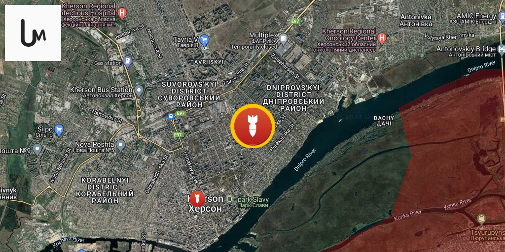 אדם אחד נהרג ו-3 פצועים כתוצאה מתקיפות מזל"טים והפגזות ארטילריות במכולת במחוז דניפרובסקי בחרסון.